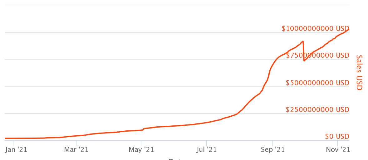 ตลาด NFT นั้นทำรายได้เป็นจำนวนมากในช่วงไม่กี่ปีที่ผ่านมา ตลาดเกม ศิลปะ และการเงิน รวมกันทำให้เกิดปริมาณเงินมหาศาล โดยในปี 2020 มีปริมาณเงินสะสมในตลาด NFT ประมาณ 46 ล้านดอลลาร์ จนถึงปลายปี 2021 มีปริมาณการซื้อขายที่น่าอัศจรรย์ถึง 41 พันล้านดอลลาร์ในการซื้อขายทั่วทั้งโลก เมื่อเวลาผ่านไป มันมีความชัดเจนมากขึ้นว่าทั้งแบรนด์และส่วนบุคคลจะมีการใช้จ่ายมากขึ้นในปี 2022
