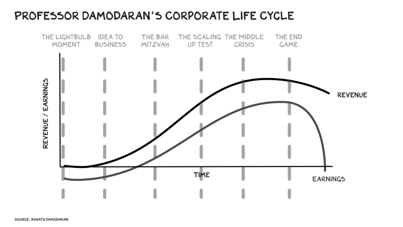 ความปรารถนาที่จะรักษาสิ่งต่าง ๆ ไว้ตามที่เป็นอยู่สามารถเริ่มต้นการเผาไหม้ที่พื้นอย่างช้าๆ ภาวะที่กลืนไม่เข้าคายไม่ออก Innovator’s Dilemma ไม่ใช่มาจากความเย่อหยิ่ง แต่เป็นข้อจำกัด — อำนาจที่จำกัดกำหนด Aswath Damodaran เพื่อนร่วมงานของฉันที่ NYU ได้ทำวิจัยที่สำคัญเกี่ยวกับวงจรชีวิตขององค์กรที่ประสบความสำเร็จ ความมีชีวิตชีวาและนวัตกรรมกระตุ้นให้พวกเขาไต่ขึ้น แต่ความสะดวกสบายของกระแสเงินสดและความปรารถนาที่จะให้พวกเขาไหลลื่นทำให้พวกเขาเชื่องช้าและหวาดกลัว บริษัทที่ดีที่สุดสร้างคูเมืองเพื่อปกป้องรายได้และยืดอายุขัยของพวกเขา บริษัทที่ดีที่สุดรายต่อไปตระหนักดีว่าพวกเขากำลังเติบโตและมีอายุอย่างสง่างาม: พวกเขาคืนเงินให้กับผู้ถือหุ้น จ่ายเงินปันผล และชำระหนี้ นอกจากนี้ ซีอีโอเพียงไม่กี่คนยังลงทุนเงินขนาดเท่าจีดีพีของคอสตาริกาให้กับคนบ้าพลังขนาดใหญ่แต่ง่อยที่พยายามจำลองโลกของเรา … โดยไม่มีขา แฟรงเกนสไตน์ดิจิทัล ถ้าคุณต้องการ