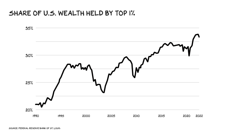 คนรวยรวยขึ้น คนจนยิ่งจนลง ในช่วงสามทศวรรษ ผู้ที่เป็น 1% ของเศรษฐกิจ US คนรวยยิ่งรวยขึ้น ข้อมูลสนับสนุนมัน ในช่วงสามทศวรรษที่ผ่านมา ส่วนแบ่งความมั่งคั่งของสหรัฐที่ถือโดยกลุ่ม 1% สูงสุดได้เปลี่ยนจาก 24% เป็น 32% เช่นเดียวกับถ้อยคำที่ซ้ำซากจำเจส่วนใหญ่ “คนรวยยิ่งรวยขึ้น” กลายเป็นถ้อยคำที่ซ้ำซากจำเจเพราะมันเป็นเรื่องจริง… เรื่องเงินและอำนาจ ผู้มีอิทธิพลมีแนวโน้มที่จะรวบรวมอำนาจมากขึ้น แม้ว่าจะมีการเลือกตั้งใหม่ซักกี่ครั้งก็ตาม