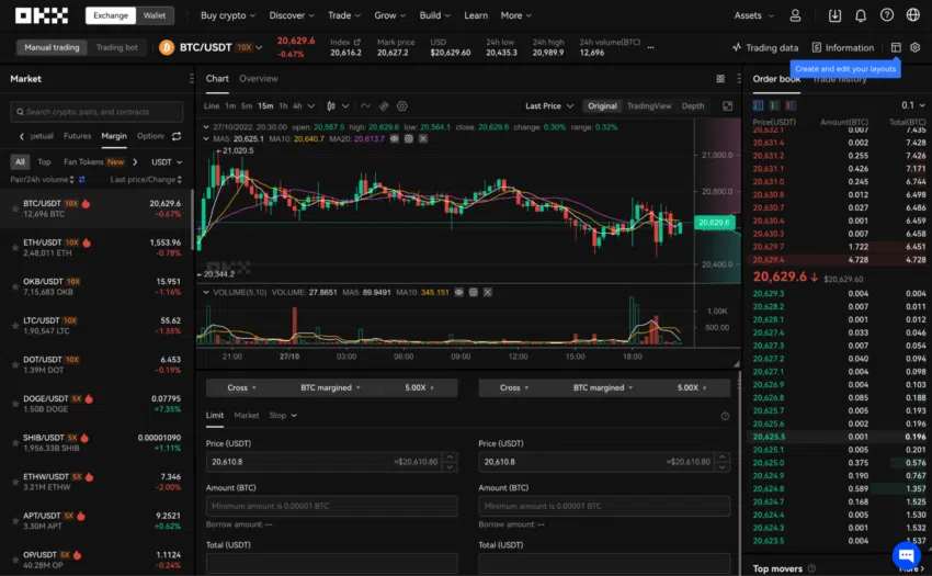 BTC/USDT นั้นเป็นคู่ซื้อขายที่ตั้งเป็นค่าเริ่มต้น อย่างไรก็ตาม คุณสามารถเลือกคู่ใดก็ได้จากด้านขวาของแผง มันเป็นการดีที่สุดที่จะเลือก Stablecoin จากการที่สามารถตรวจสอบราคาของมันได้ง่ายกว่าเพราะความสัมพันธ์กับสกุลเงินดอลลาร์สหรัฐฯ