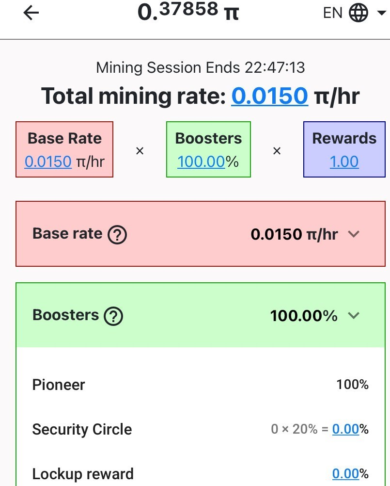 คุณสามารถขุดโดยไม่มีผู้อ้างอิงได้ แต่รางวัลจะลดลงอย่างมาก การขุดบนเครือข่ายทำได้โดยเพียงแค่กดปุ่มทุกวันเพื่อรับรางวัลที่จะถูกเติมให้เต็มทุกๆ 24 ชั่วโมง เนื่องจากการ Halving เป็นประจำของ Pi — ซึ่งเป็นเหตุการณ์ที่จำนวนเหรียญที่ขุดได้จะลดลงเหลือครึ่งหนึ่ง — เครือข่ายจะดึงดูดผู้ใช้งานมากขึ้นเนื่องจากความขาดแคลนของมัน นอกจากนี้ เครือข่ายยังคงปลอดภัยโดย “วงความปลอดภัย” ของ Pi โดยที่ซึ่งกลุ่มผู้ใช้งาน 3-5 คนรับรองความน่าเชื่อถือของกันและกันผ่าน Trust Graphs