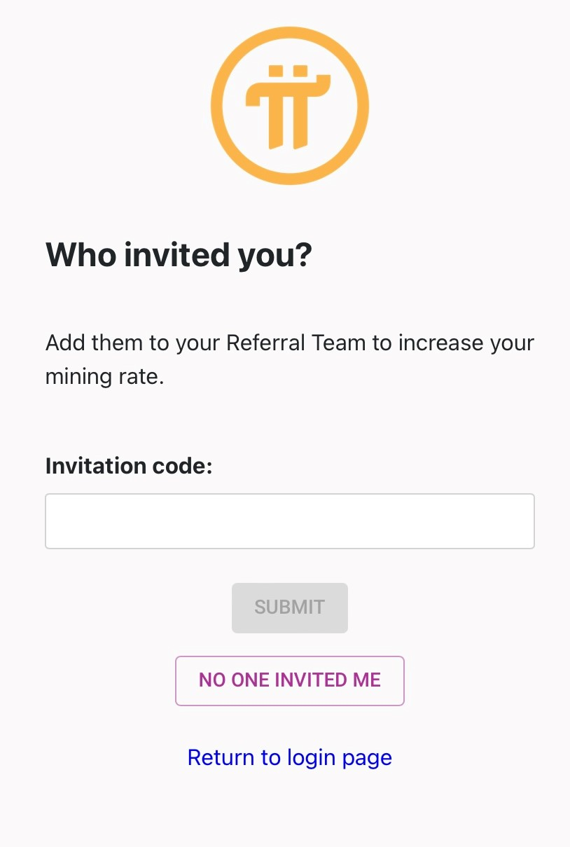 ผู้ใช้งานที่ได้รับเชิญเข้าสู่เครือข่ายโดยการอ้างอิงจะถูกขอให้ใส่รหัสเชิญชวน หรือ หากคุณเข้าร่วมโดยไม่ได้ใช้รหัส ผลตอบแทนการขุดของคุณจะน้อยที่สุด คุณพลาดโอกาสในการขุดเพิ่มถึง 25% ของอัตราการขุดพื้นฐานของคุณ