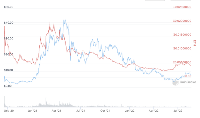 ผลตอบแทนกระแสเงินสดมักจะเกิดจากการ Stake บางอย่าง (เช่น Stake ETH เป็นตัวตรวจสอบความถูกต้อง) หรือการถือโทเค็นที่ทำให้เกิดกระแสเงินสดบางประเภท (เช่น การถือครอง stETH ซึ่งทำให้เกิดผลตอบแทนจากการ Stake ETH) ในขณะที่ crypto จำนวนมากวัดกำไรของพวกเขาในรูปของเงินดอลลาร์ คนอื่น ๆ วัดพวกเขาด้วยเงื่อนไข ETH หรือ BTC ทำให้การสร้างกระแสเงินสดกลับมายากมากในระยะยาว (เนื่องจากโทเค็นส่วนใหญ่ลดลง 90–95% ในช่วงระยะเวลา 1-4 ปีและไม่เคย กู้คืนในเงื่อนไข ETH และ BTC) ดูตัวอย่าง UNI ซึ่งเป็นหนึ่งในโครงการที่ดีที่สุดในDeFi ที่มีราคาเป็นดอลลาร์และ ETH ในแง่ของเงินดอลลาร์ โดยรวมของ UNI นั้นสูงขึ้น ในแง่ ETH ไม่เคยไปถึงระดับสูงสุดที่ 0.02 ETH สิ่งนี้ทำให้ค่าเสียโอกาสสำหรับเจ้าของคริปโต (crypto) สูง และบังคับให้ APY กระแสเงินสดเพิ่มขึ้นเพื่อปรับข้อเท็จจริงนี้
