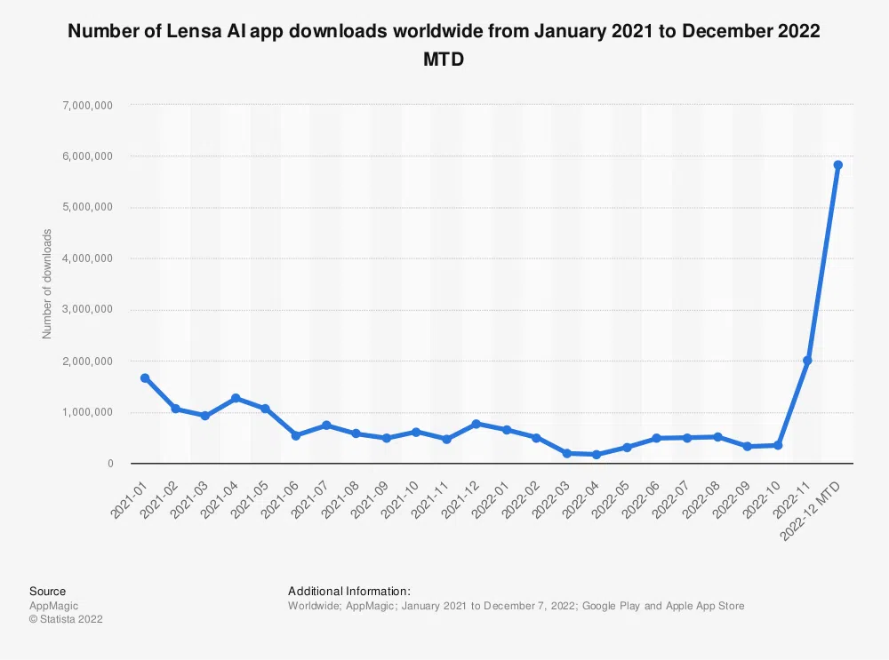 กระแสดังกล่าวทำให้ Lensa ได้รับความนิยมอย่างก้าวกระโดด จากข้อมูลจาก Statista การดาวน์โหลดแอปเพิ่มขึ้นจากน้อยกว่า 1 ล้านครั้งในเดือนตุลาคม 2022 เป็นมากกว่า 5 ล้านครั้ง ณ วันที่ 8 ธันวาคม 2022