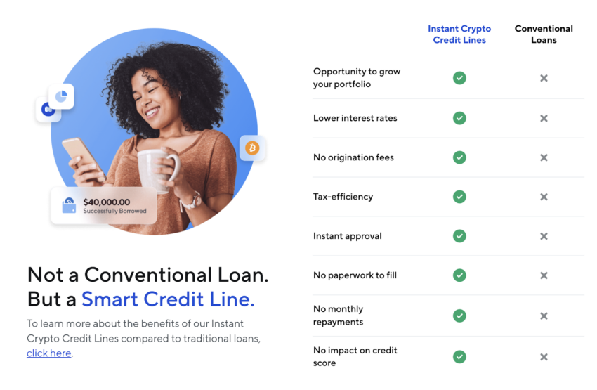 - เครดิต Crypto ตั้งแต่ 0% APR คุณสามารถเข้าถึงวงเงินสินเชื่อและอัตราการกู้ยืมได้ทันทีตั้งแต่ 0% APR