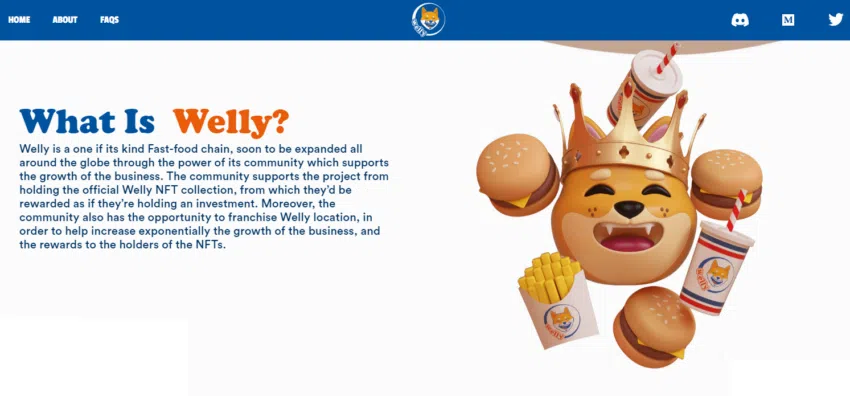 นี่คือร้านอาหารฟาสต์ฟู้ดแห่งแรกที่ได้รับแรงบันดาลใจจาก Shiba-Inu ตั้งอยู่ในซานนาซาโร 4, 80122 เมืองนาโปลี ประเทศอิตาลี ในเดือนกุมภาพันธ์ 2022 Shytoshi Kusama ผู้พัฒนาหลักของ Shiba Inu ได้เปิดเผยถึงร้านอาหารที่แปลกใหม่และเป็นที่แรกที่ใช้ SHIB ที่มีชื่อว่า Welly’s ความร่วมมือครั้งนี้คาดว่าจะช่วยให้ Shiba Inu ได้รับความสนใจหลักจากอาหารที่ติดฉลาก SHIB แสนอร่อย