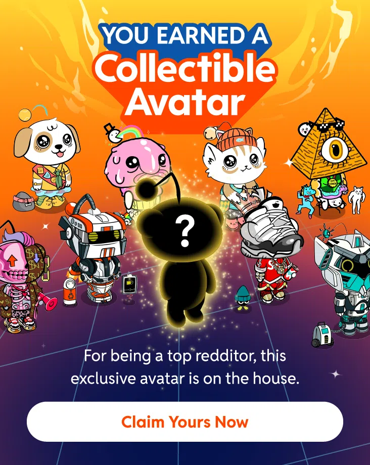 สิ่งนี้จะขึ้นอยู่กับ “Karma Score”, การมีส่วนร่วมของชุมชน, และปัจจัยอื่นๆ ผู้ใช้งาน Reddit อาจจะมีสิทธิ์ได้รับอวาตาร์เพื่อสะสมนี้ฟรีๆ หากคุณมีสิทธิ์ได้รับ คุณจะได้รับการแจ้งเตือนให้ทราบ จากนั้น คุณสามารถรับอวาตาร์ฟรีของคุณได้ผ่านแบนเนอร์ที่คล้ายกับภาพด้านล่าง