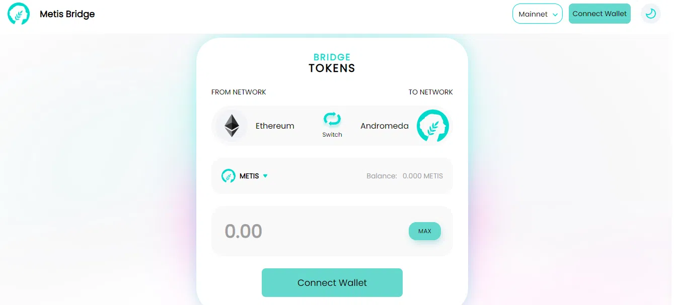 ตอนนี้ คุณได้เพิ่มเครือข่าย Metis ลงในกระเป๋าเงิน MetaMask ของคุณแล้ว คุณสามารถโอนย้ายโทเค็นจากเลเยอร์พื้นฐานของ Ethereum ไปยังเลเยอร์ที่ 2 ของ Andromeda ได้ นี่คือวิธีใช้ Metis Bridge เพื่อเชื่อมต่อสะพานนี้ให้เสร็จสิ้น: