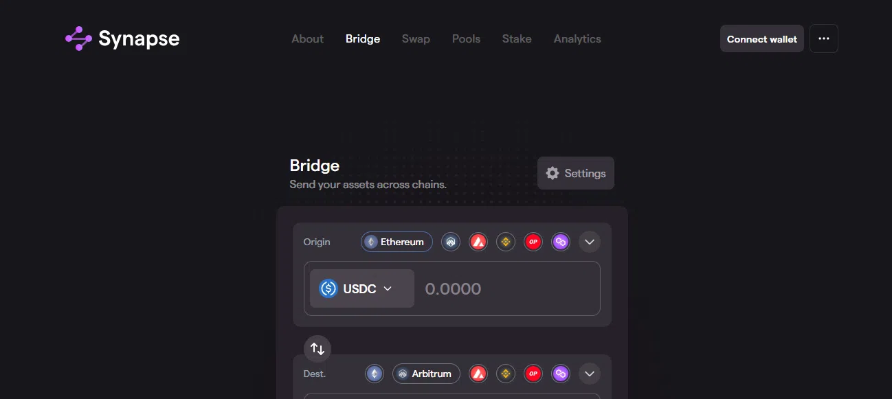 Metis ได้ผสานรวม Synapse Protocol เข้ากับระบบนิเวศของมัน นั่นหมายความว่าคุณสามารถโอนย้ายระหว่าง Ethereum กับ Metis ได้โดยใช้ Synapse นี่คือขั้นตอนในการโอนย้าย:
