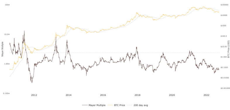 ปัจจุบัน BTC เกือบจะถูกตีราคาต่ำเกินไปเหมือนช่วงตลาดหมีปี 2015 และ 2018 แต่ก็ยังไม่มากนัก