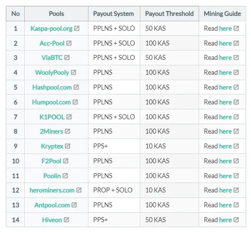 แม้ว่าในทางเทคนิคแล้ว คุณจะสามารถขุด Kaspa ด้วย GPU หรือ CPU ได้ แต่มันก็ไม่คุ้มค่า ผู้ใช้งานจะสามารถเลือกขุดได้ด้วยตัวเองหรือเข้าร่วมกลุ่มการขุดก็ได้