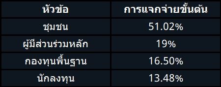 ขณะนี้ การแจกจ่ายโทเค็นเป็นไปตามข้อมูลดังต่อไปนี้: