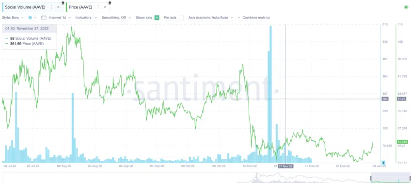 และสุดท้าย ปริมาณการถูกพูดถึงในโลกโซเชียลเกี่ยวกับ AAVE นั้นก็เพิ่มขึ้นหลังเดือนพฤศจิกายน ราคายังไม่มีการตอบสนองในเชิงบวกจนกระทั่งมันไปถึงจุดสูงสุดในเดือนพฤศจิกายน แต่ข้อมูลในอดีตแสดงให้เห็นว่าราคาอาจจะพุ่งสูงขึ้นได้ในกรณีนี้