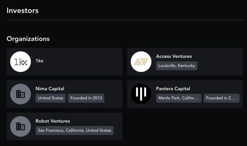 - Pantera Capital เป็นหนึ่งในนักลงทุนหลักของโปรเจกต์