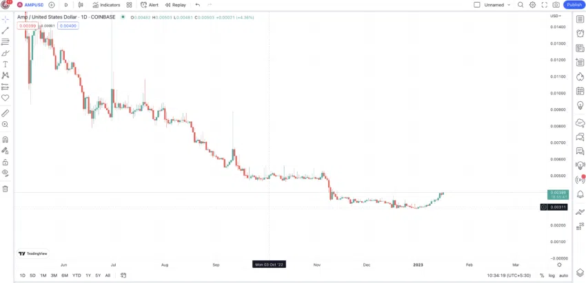 การคาดการณ์ราคาของเรานั้นมักจะใช้ชาร์ตรายสัปดาห์เพื่อดูแนวโน้มของสินทรัพย์ดิจิทัลใดๆ ในระยะยาว แต่อย่างไรก็ตาม เราจะใช้ชาร์ตรายวันของ AMP เพื่อดูข้อมูลราคาย้อนหลังในระยะสั้นกันก่อน