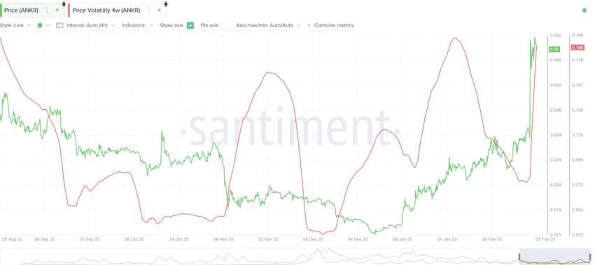 หากคุณดูที่กราฟความผันผวนของ ANKR เราเห็นได้ถึงแนวโน้มที่น่าสนใจที่เกิดขึ้น จะสังเกตเห็นได้ว่าจุดสูงสุดของความผันผวนกำลังก่อตัวขึ้น และเมื่อทำการวิเคราะห์กราฟในอดีต หากจุดสูงสุดดังกล่าวเกิดขึ้นต่ำกว่าจุดที่เกิดขึ้นในวันที่ 26 มกราคม 2023 ราคาของ ANKR อาจจะเพิ่มขึ้นต่อไป อย่างไรก็ตาม มันอาจจะมีการชะลอตัวของราคาเกิดขึ้นหากจุดสูงสุดดังกล่าวสูงขึ้นกว่าเดิม