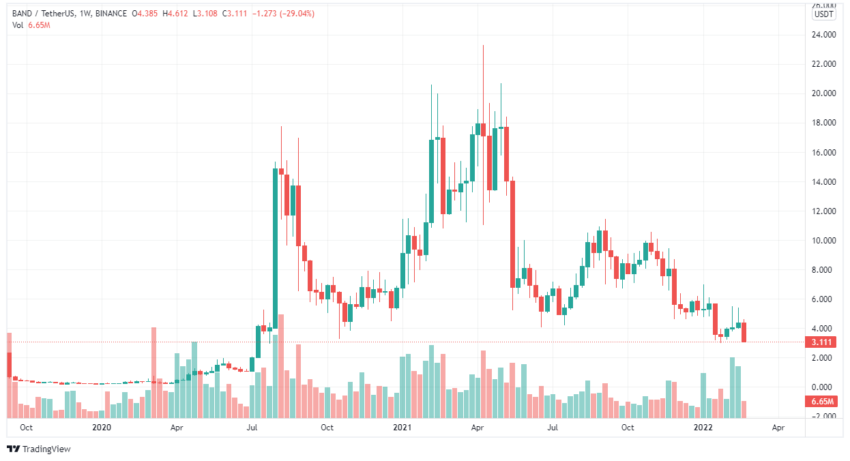 BAND เปิดตัวในช่วงตลาดหมีของคริปโตเคอเรนซีในช่วงปลายปี 2019 เป็นเวลาหลายเดือนที่ราคายังคงทรงตัวที่ $0.20 และ $0.30 ซึ่งน้อยกว่าราคา ICO ที่ $0.30