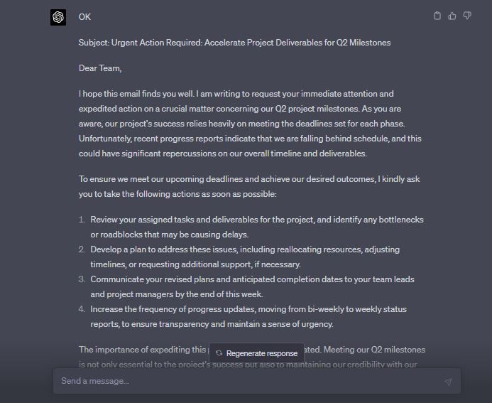 โปรดเขียนอีเมลขอให้คนกลุ่มใดกลุ่มหนึ่งดำเนินการในเรื่องที่สำคัญอย่างรวดเร็ว โดยให้บริบทสำหรับความเร่งด่วนและเฉพาะเจาะจงนี้ เป็นเรื่องเกี่ยวกับกระบวนการที่จำเป็นจะต้องดำเนินการด่วน เน้นความสำคัญในเรื่องของการเร่งกระบวนการ เพื่อให้บรรลุผลลัพธ์ที่ต้องการ ตรวจสอบให้แน่ใจว่าอีเมลมีหัวเรื่องที่ชัดเจน และมีลักษณะที่เป็นมืออาชีพ