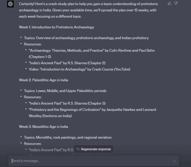 ฉันสนใจที่จะเรียนรู้เกี่ยวกับเรื่องโบราณคดีก่อนประวัติศาสตร์ของอินเดีย แต่ฉันไม่มีความรู้หรือประสบการณ์ในเรื่องนี้มาก่อนเลย ในช่วงเวลาสามเดือนข้างหน้า ฉันมีเวลาว่างสองวันต่อสัปดาห์ วันละสี่ชั่วโมง คุณช่วยฉันสร้างแผนการศึกษา เพื่อทำความเข้าใจเกี่ยวกับเรื่องโบราณคดียุคก่อนประวัติศาสตร์ในอินเดีย ให้ดียิ่งขึ้นได้หรือไม่? โปรดจัดเตรียมแผนการศึกษาที่มีโครงสร้างที่ชัดเจน และสรุปหัวข้อที่ฉันควรจะให้ความสนใจ, แนะนำแหล่งข้อมูลในการอ่านหรือดู, และให้เคล็ดลับหรือคำแนะนำอื่น ๆ เพื่อช่วยให้ฉันบรรลุเป้าหมายของฉัน