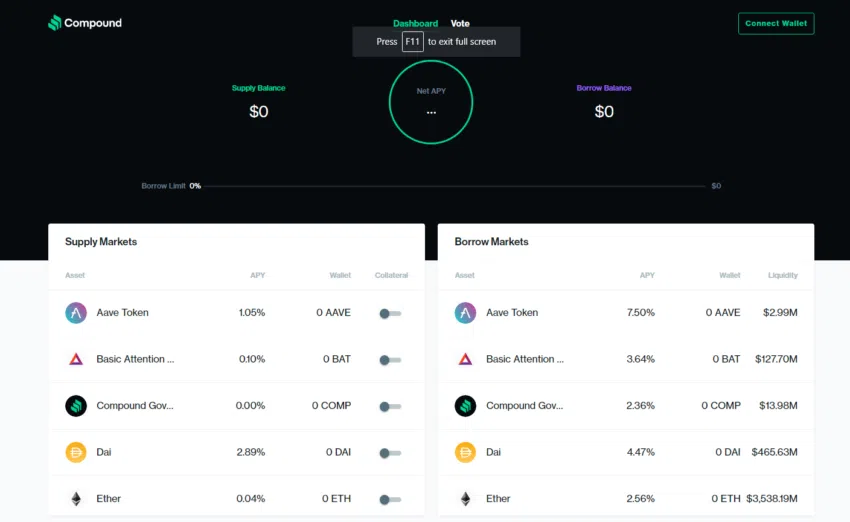 Compound Finance เป็นโปรโตคอลการให้กู้ยืมแบบ DeFi ผู้ใช้งานสามารถฝากเงินดิจิทัลและรับดอกเบี้ยหรือยืมสินทรัพย์ Crypto กับมันได้ Compound ใช้สัญญาอัจฉริยะเพื่อจัดการและจัดเก็บเงินทุนสกุลเงินดิจิทัลที่ผู้ใช้ให้มาโดยอัตโนมัติ