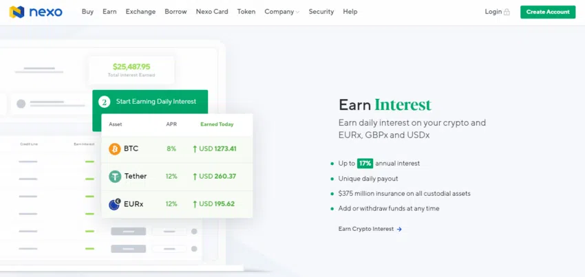 Nexo เป็นแพลตฟอร์มแรกที่เสนอสินเชื่อที่ได้รับการสนับสนุนจากสกุลเงินดิจิทัลแบบทันที และมีเป้าหมายเพื่อแก้ปัญหาความไร้ประสิทธิภาพในตลาดการให้กู้ยืม คุณอาจจะพูดได้ว่าแพลตฟอร์มนี้เป็นบัญชีออมทรัพย์ Crypto