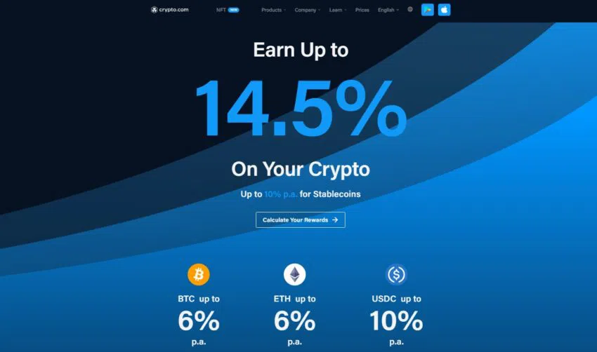 Crypto.com คือเว็บเทรด Cryptocurrency ที่เป็นที่รู้จักกันดีซึ่งรองรับสินทรัพย์ Crypto ที่หลากหลาย บริษัทยังเสนอทางเลือกในการรับ Passive Income จาก Stablecoins ของคุณ อย่างไรก็ตาม ผลตอบแทนของ Stablecoin จะขึ้นอยู่กับเหรียญที่เลือกและประเภทของเงินฝากของคุณ