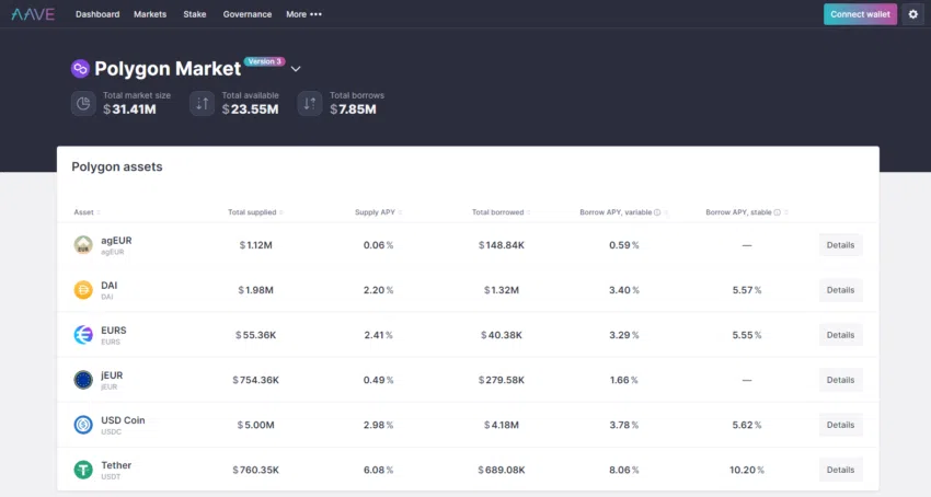 เช่นเดียวกับ Compound สินทรัพย์แต่ละรายการมี APY ของตัวเอง และขึ้นอยู่กับช่วงเวลาที่สินทรัพย์อยู่บนแพลตฟอร์ม