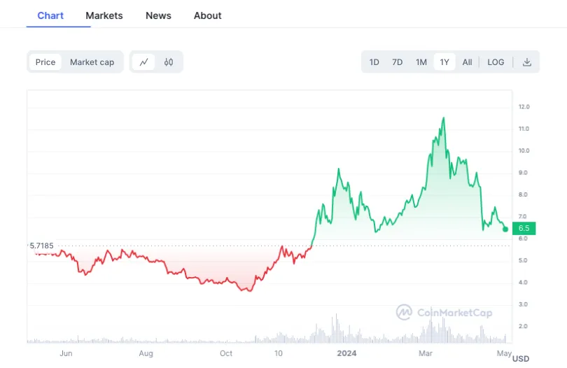 ณ วันที่ 1 พฤษภาคม 2024 ราคาของ Polkadot อยู่ที่ 6.78 ดอลลาร์ ตามข้อมูลจาก CoinMarketCap โดยมีมูลค่าตลาด 9,754,511,094 ดอลลาร์ สกุลเงินได้ทำสถิติสูงสุดเมื่อวันที่ 4 พฤศจิกายน 2021 ที่ราคา 55.00 ดอลลาร์