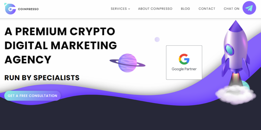 Coinpresso คือ บริษัทเอเจนซี่ที่เชี่ยวชาญด้านการตลาดดิจิทัล และโฟกัสในเรื่องการโปรโมตธุรกิจที่เกี่ยวข้องกับสกุลเงินดิจิทัล Coinpresso เป็นที่รู้จักในฐานะหนึ่งในบริษัทการตลาดที่ดีที่สุดในอุตสาหกรรม ทีมงานของพวกเขาประกอบไปด้วยผู้เชี่ยวชาญในด้าน Web3 และการตลาดดิจิทัล ซึ่งช่วยให้พวกเขาสามารถสร้างสรรค์กลยุทธ์การตลาดใหม่ๆ ขึ้นมาได้