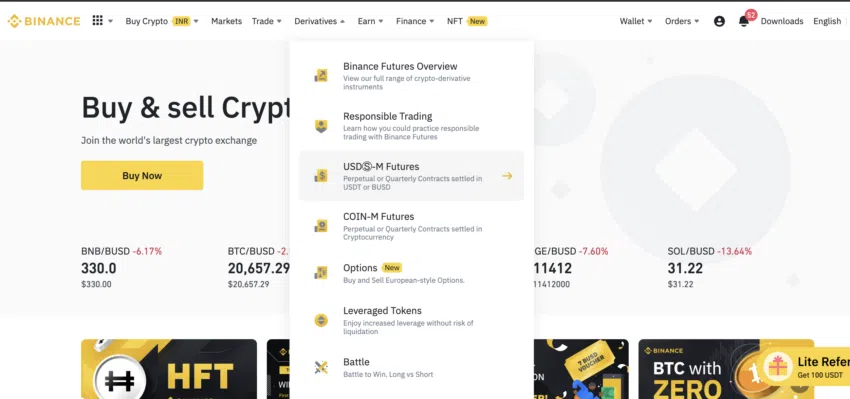 ตรงไปที่หัวข้อ “Derivatives” แล้วเลือก “USD-M Futures”