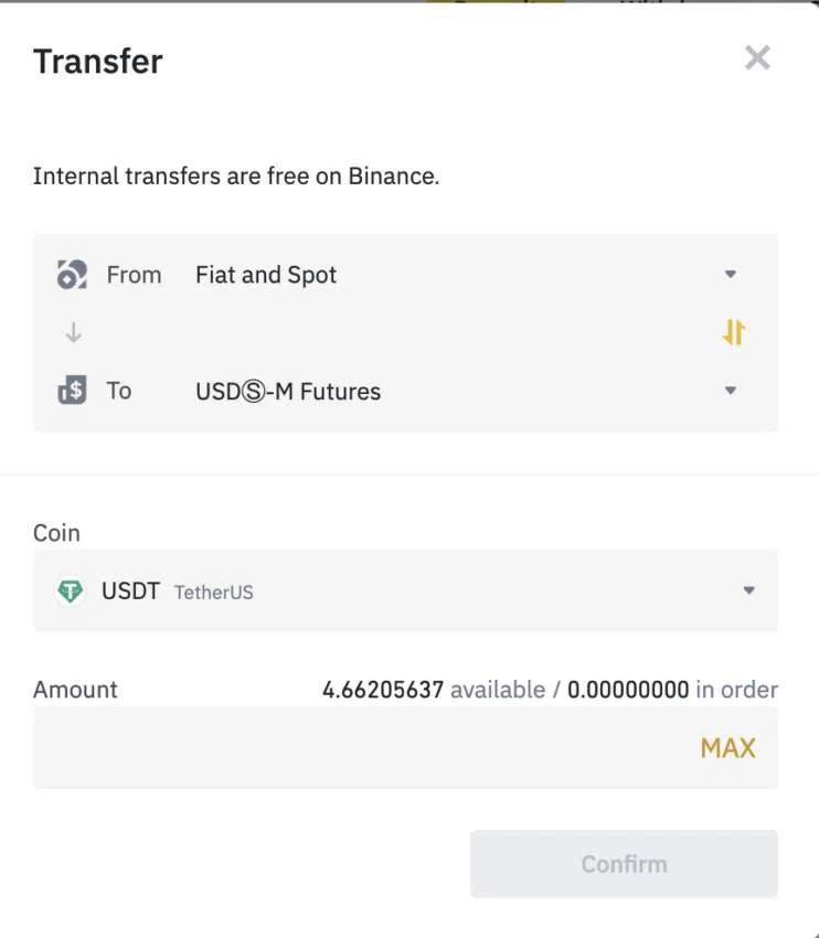 คุณสามารถย้ายเงิน (USDT) จากกระเป๋าเงิน Spot ไปยังกระเป๋าเงิน USD-M เพื่อซื้อขายได้แล้ว