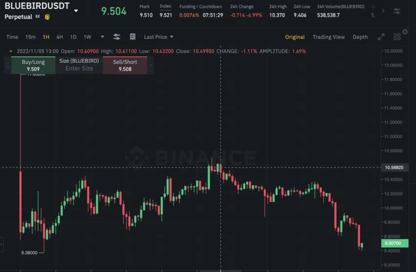 ดัชนีเริ่มเปิดใช้งานในวันที่ 2 พฤศจิกายน 2022 และให้เลเวอเรจสูงสุดถึง 25 เท่า USDT เป็นคู่ซื้อขายที่สามารถใช้ได้สำหรับดัชนีนี้ อย่างไรก็ตาม คุณสามารถใช้โหมดการซื้อขายหลายสินทรัพย์สำหรับ Binance Bluebird Index ได้ — ซึ่งจะทำให้คุณสามารถใช้สินทรัพย์อื่นๆ [รวมถึง BUSD] เป็นมาร์จิ้นได้
