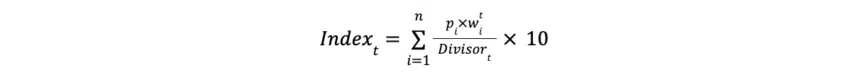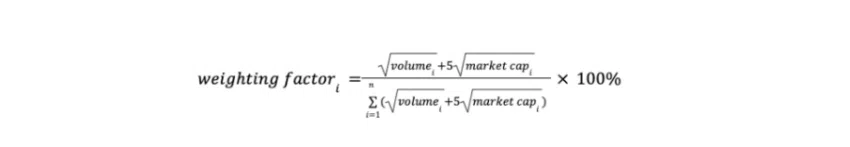 เหรียญทุกเหรียญมีน้ำหนักในกระดานเทรด ซึ่งเขียนแทนด้วย w ในขณะที่ตัวหารคือค่ามาตรฐานเรียลไทม์คูณด้วยมูลค่าของราคาและน้ำหนักขององค์ประกอบเฉพาะ