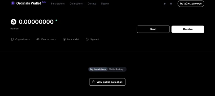 เมื่อคุณชำระเงินแล้ว Bitcoin NFT หรือ Ordinals จะถูกส่งไปยัง Ordinals Wallet ของคุณ