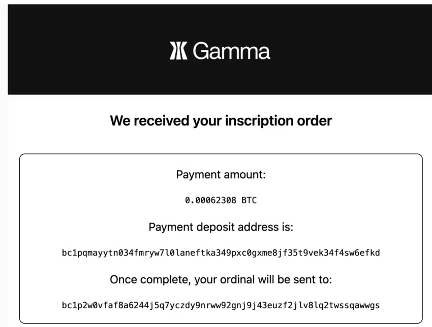 เมื่อคุณชำระเงินและได้รับใบเสร็จแล้ว Inscription ควรจะถูกส่งไปยัง Ordinals Wallet ของคุณภายใน 24 ชั่วโมง