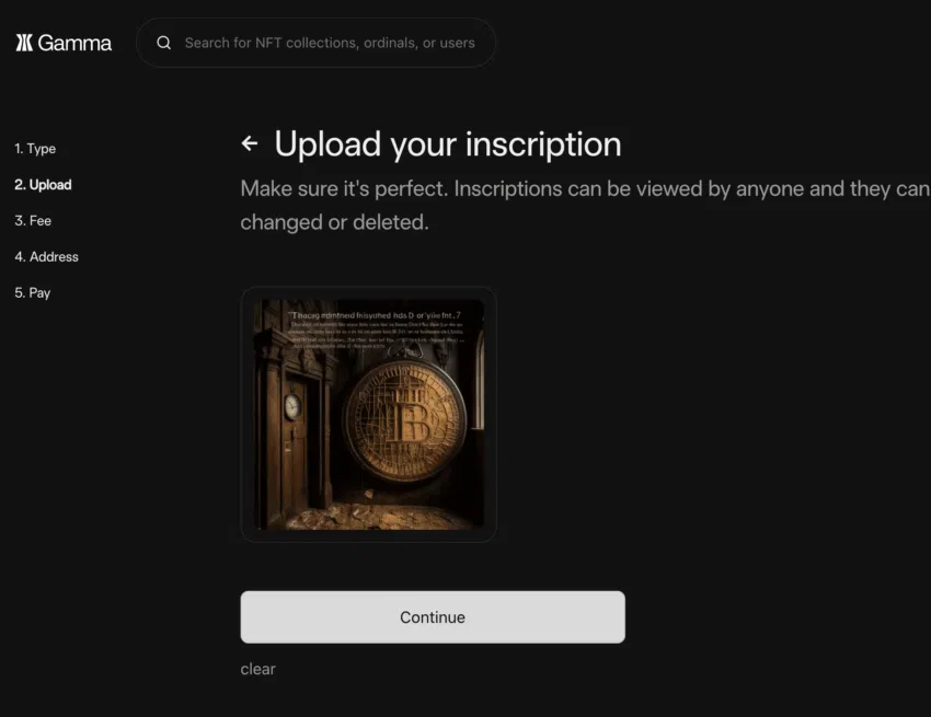 เมื่อกระเป๋าเงินของคุณพร้อมใช้งานแล้ว ให้ใช้ Gamma ซึ่งเป็นบริการฝังข้อมูลแบบไม่ต้องใช้โค้ด เพื่อเตรียม Bitcoin NFT ของคุณให้พร้อม, อัพโหลด, และส่งออกไปได้เลย