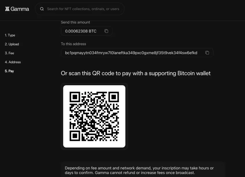หมายเหตุ: เพื่อชำระเงิน ให้คุณเติมเงินลงในกระเป๋าเงินที่คุณต้องการด้วย USD หรือ BTC และเมื่อคุณได้รับ Ordinal หรือ Sat ที่ฝังข้อมูลแล้ว มาอยู่ในกระเป๋าเงินของคุณเรียบร้อยแล้ว คุณจะต้องระวังให้ดี ไม่เช่นนั้น คุณอาจจะใช้มันจ่ายออกไปเหมือนเป็น Satoshi ทั่วไปได้