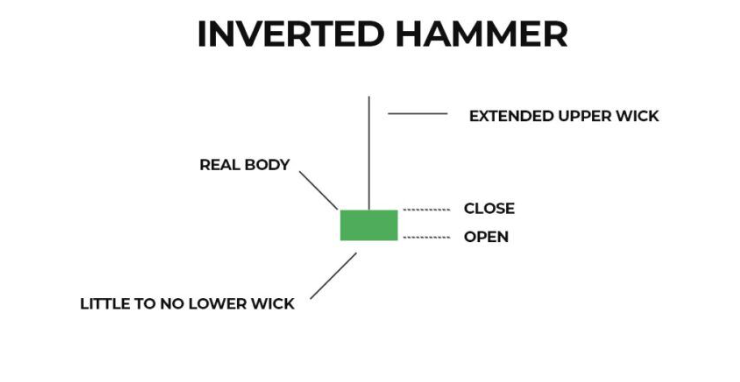 รูปแบบ Inverted Hammer ก็เป็นอีกหนึ่งรูปแบบที่บ่งบอกว่า ผู้ซื้อจะเข้าครองตลาดได้ในไม่ช้า และราคาอาจจะพุ่งสูงขึ้น อย่างไรก็ตาม รูปแบบ Inverted Hammer จะมีไส้เทียนด้านบนที่ยาวและมีขนาดแท่งเทียนที่สั้น ดังนั้น รูปร่างของมันจึงคล้ายกับ “ค้อนคว่ำ” รูปแบบ Inverted Hammer นั้นอาจจะมีไส้เทียนด้านล่างเล็กน้อยหรือไม่มีเลยก็ได้