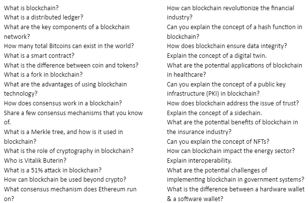 ตัวอย่างของคำถามในการสัมภาษณ์ด้านล่างเหล่านี้ บางคำถามอาจจะเป็นเพียงการถามเป็นพิธีการเท่านั้น แต่บางคำถามก็อาจจะช่วยให้ผู้สัมภาษณ์รู้ได้ว่าคุณมีความเข้าใจเกี่ยวกับ Web3 เป็นอย่างดีหรือไม่