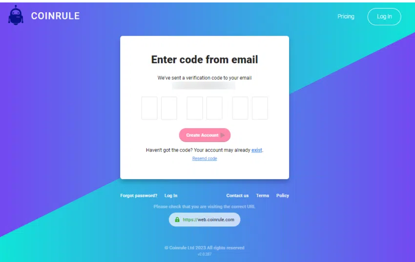 - ยินดีด้วย! คุณได้สมัครบัญชี Coinrule ของคุณอย่างเป็นทางการแล้ว