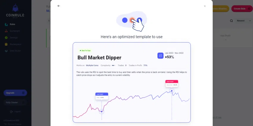 - อินเตอร์เฟสที่ใช้งานง่าย: Coinrule มี UI ที่เน้นผู้ใช้งานเป็นศูนย์กลาง ซึ่งเหมาะสำหรับทั้งนักเทรดมือใหม่และนักเทรดที่มีประสบการณ์