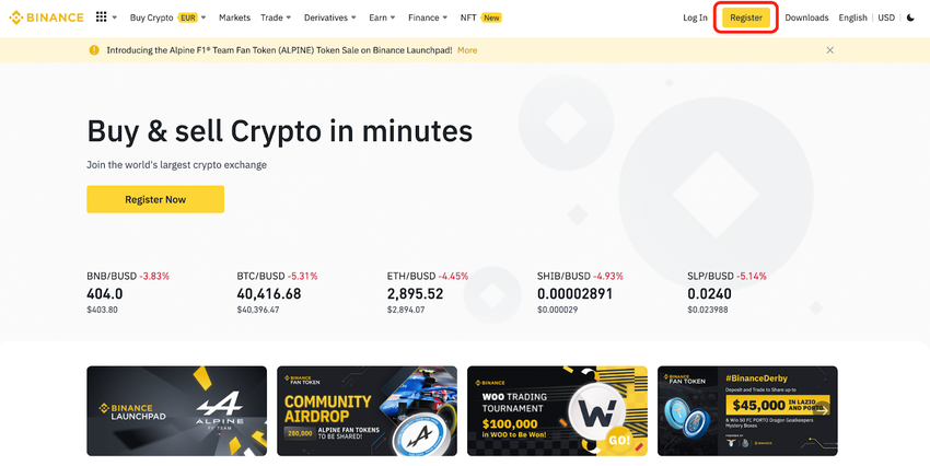 การตั้งค่าบัญชีบน Binance เป็นเรื่องง่ายและทำเสร็จได้ด้วยการคลิกเพียงไม่กี่ครั้ง คลิกลงทะเบียนและกรอกข้อมูล