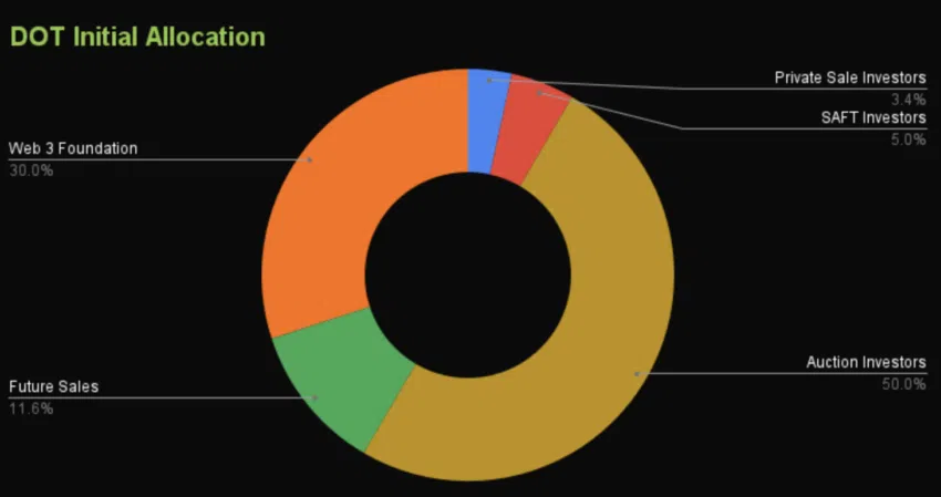 นี่คือข้อมูลการแจกจ่ายโทเค็น DOT (ในช่วงเริ่มแรก):