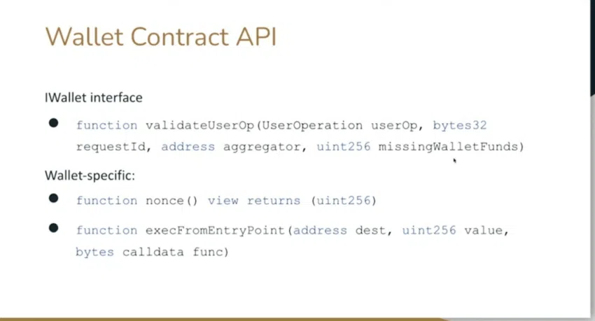 หมายเหตุ: Ethereum Foundation มี Wallet Contract API และ SDK ที่จำเป็นสำหรับ 3rd Party และผู้สร้างเพื่อช่วยให้สร้างสิ่งต่าง ๆ ตามมาตรฐาน ERC-4337 ได้