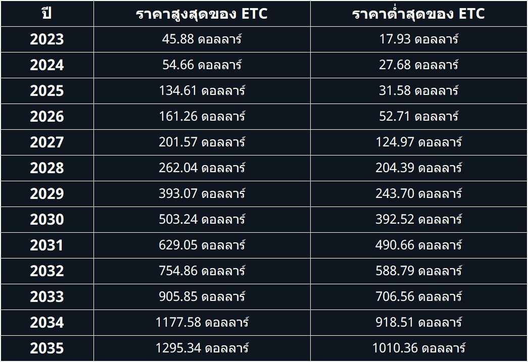 - การคาดการณ์ราคา Ethereum Classic (ETC) ในระยะยาว (สูงสุดถึงปี 2035)