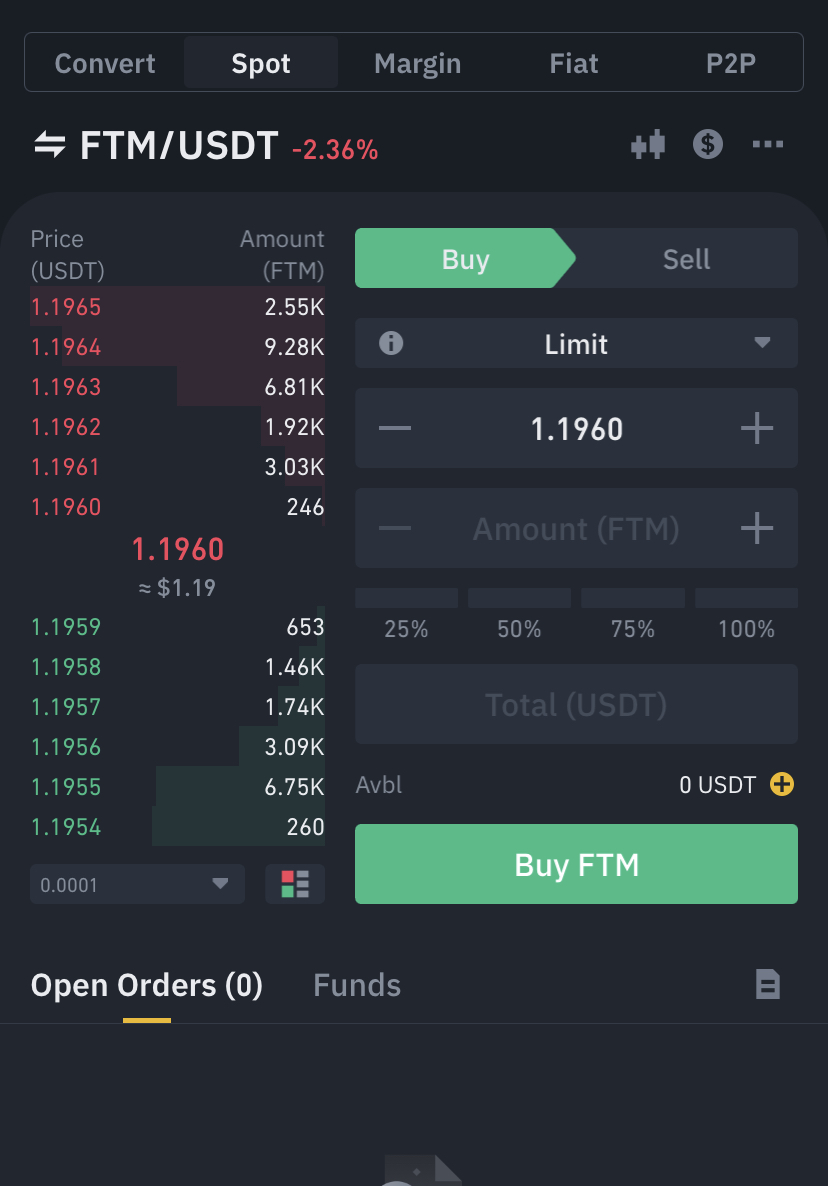 เมื่อคุณทำการฝากเงินเรียบร้อยแล้ว คุณจะต้องเลือก FTM/USDT และกรอกจำนวน FTM ที่คุณต้องการซื้อ