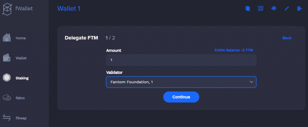วิธีที่ง่ายที่สุดคือการใช้กระเป๋าเงิน Fantom โดยเลือก Staking ที่ด้านซ้ายมือของหน้าจอแล้วเลือกเพิ่มการมอบหมาย