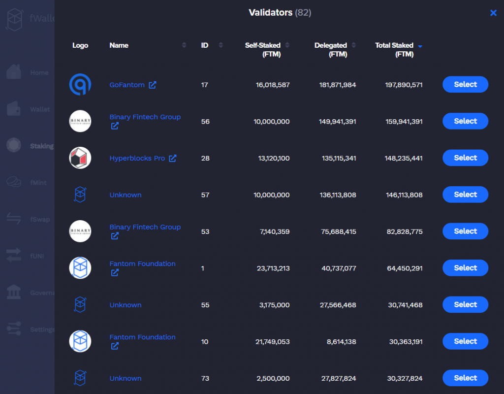แพลตฟอร์มกำหนดให้ผู้ตรวจสอบความถูกต้อง stake FTM เพื่อเรียกใช้โหนดและรับรางวัล staking ที่เท่ากัน อย่างไรก็ตามผู้ใช้ที่ไม่สามารถตรวจสอบโหนดสามารถมอบโทเค็นของตนให้กับผู้ตรวจสอบที่มีอยู่เพื่อรับในส่วนของรางวัล staking และค่าธรรมเนียมเครือข่าย