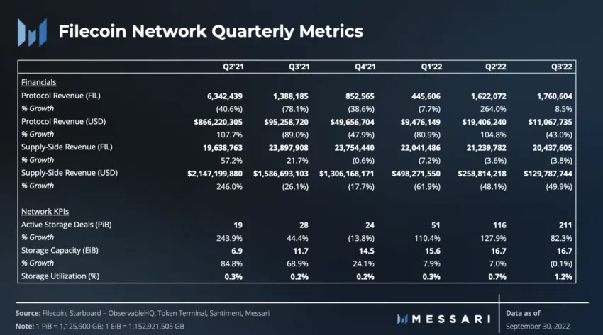 โปรดสังเกตว่ารายได้จากโปรโตคอลนั้นเพิ่มขึ้น 8.5% ในแง่ของ FIL (จำนวนสกุลเงินดั้งเดิมของเครือข่าย) การลดลงในแง่ของ USD นั้นเกิดจากการตกต่ำของตลาด Crypto โดยรวม
