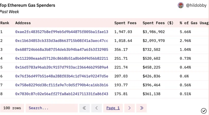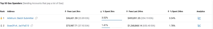 ข้อมูลการจ่ายค่าแก๊สจาก Dune Analytics แสดงให้เห็นถึง Address ที่จ่ายค่าแก๊สมากที่สุดในช่วงสัปดาห์ที่ผ่านมา โดย Address ดังกล่าวมีส่วนเกือบ 5.7% ของค่าแก๊สทั้งหมดต่อสัปดาห์ เนื่องจากการ Front-Running ****เป็นสิ่งที่ผลักดันราคาของสินทรัพย์ให้สูงขึ้น บทบาทของ Sandwich Attack ที่ใช้ MEV Bots ช่วยในการผลักดันมูลค่าใน Address ของ dimethyltryptamine.eth ให้สูงขึ้นนั้นก็เป็นสิ่งที่ไม่สามารถปฏิเสธได้